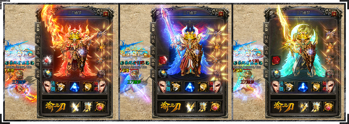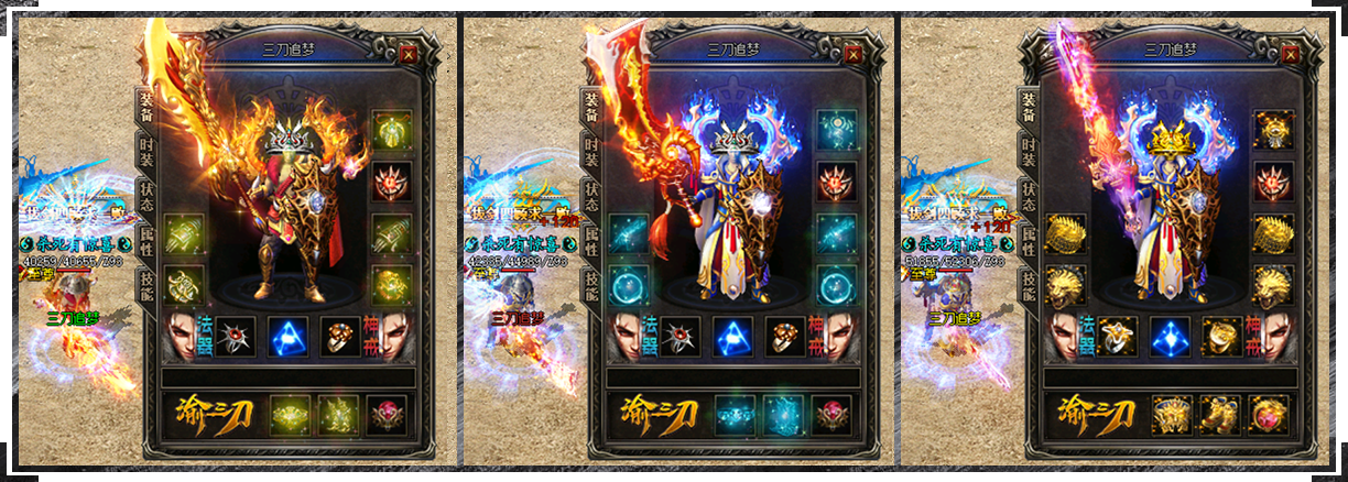 传统的战士风格,气势浩大,给人壮观和澎湃的感觉,金色的天际英武的战士,侠义设 计此模版特效较为风沙滚滚,飞舞的火苗,此男战士比较英俊,装备展示可以滚动展示,也 可以平铺展示,适用于任何内容......